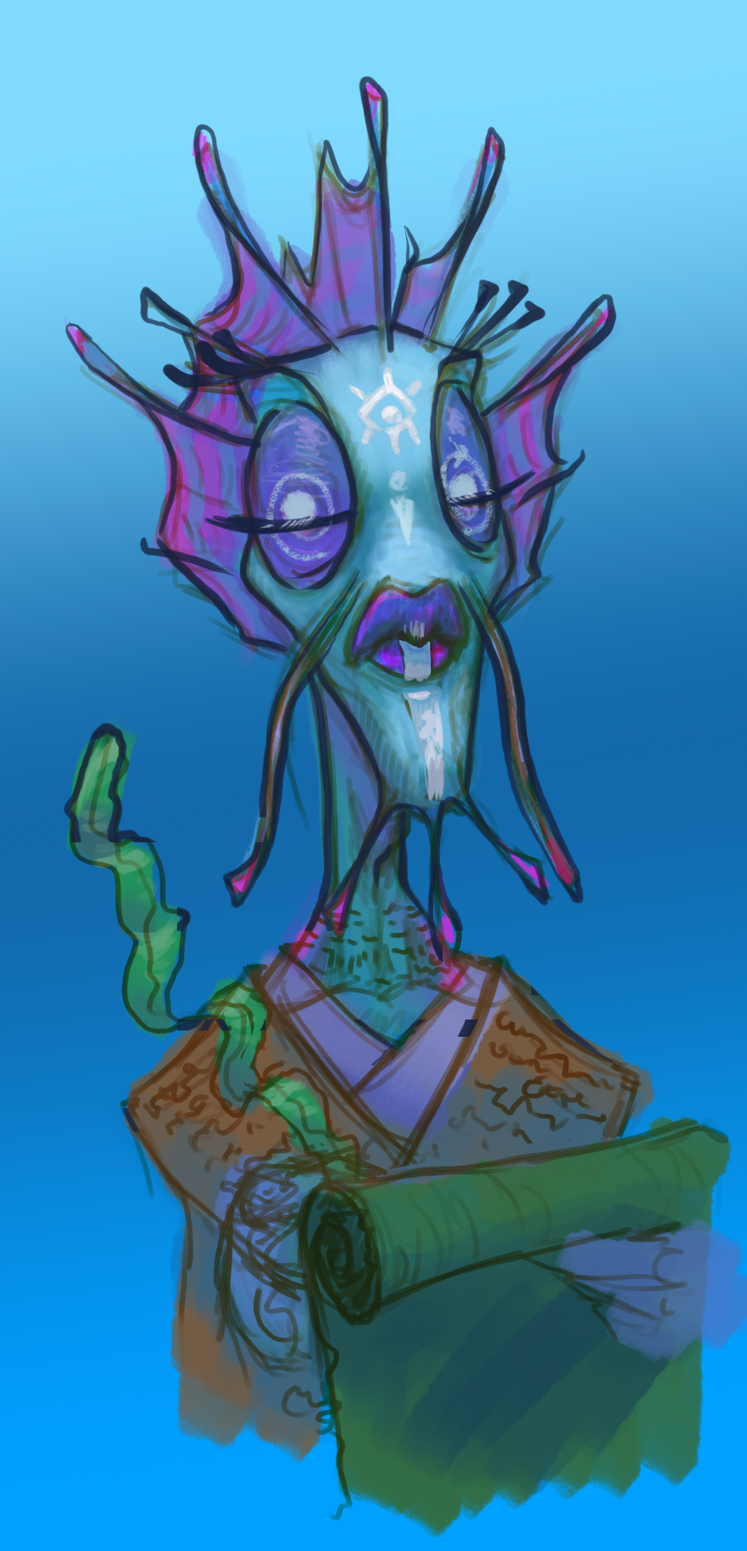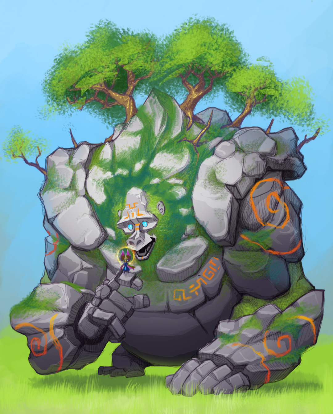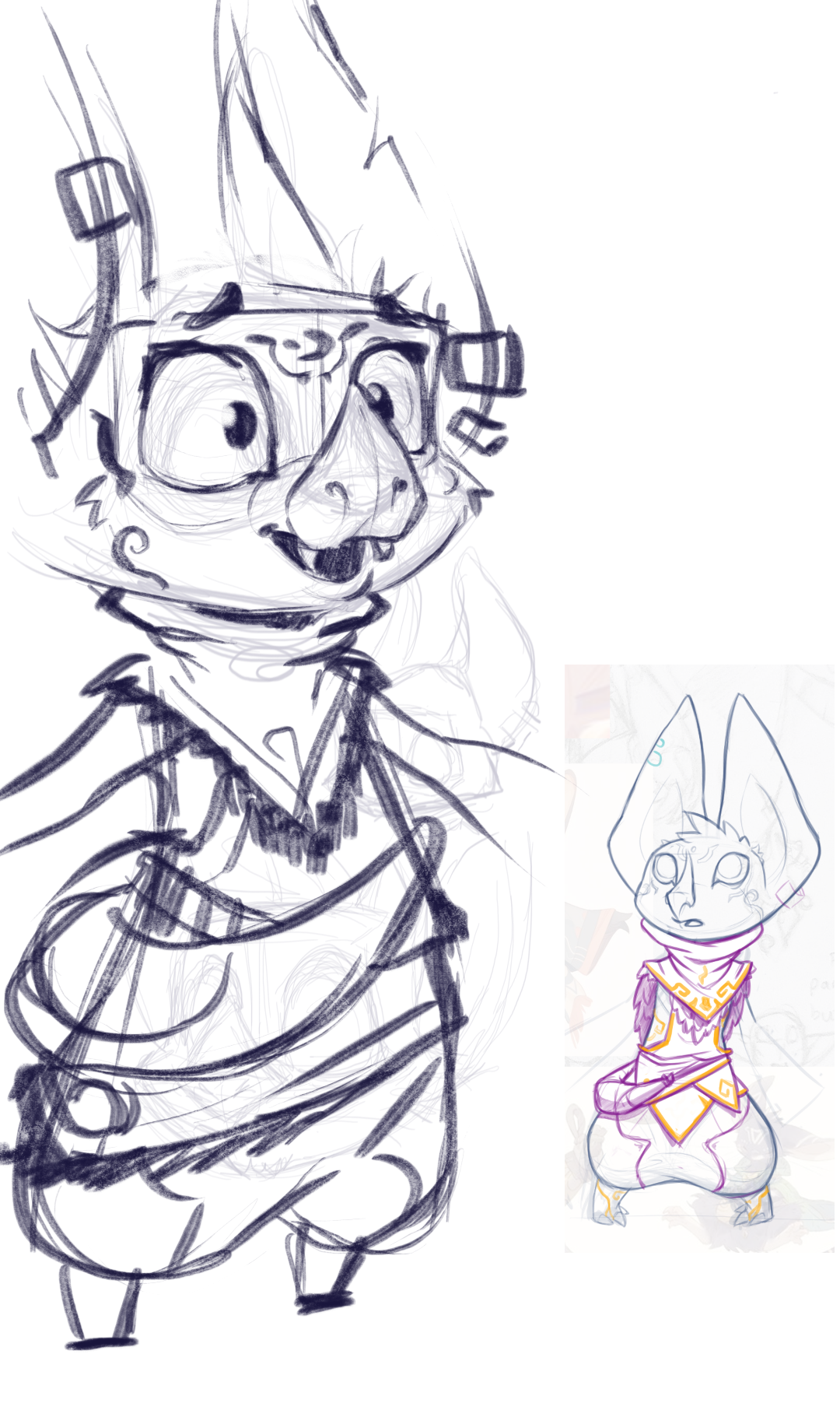For me, character design is so much more than just drawing or painting a creature; be that creature human, a bug or anything else. For me, it's a chance to show off who that creature is. What they're like. It tells the players or viewers all the information about them from the moment they see them: are they stoic or eccentric, nervous or boisterous etc. This is a thought process that I take even further in animation!