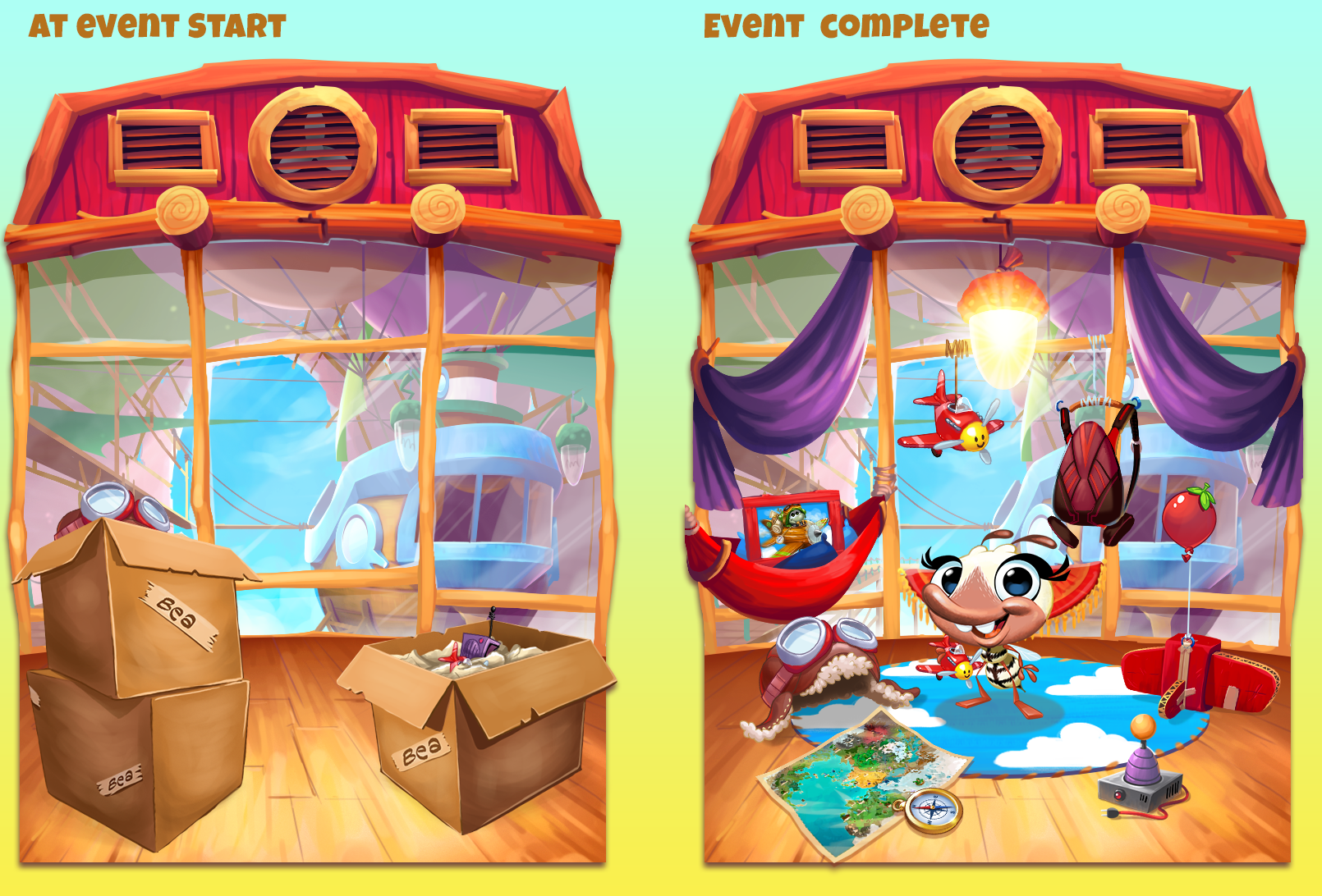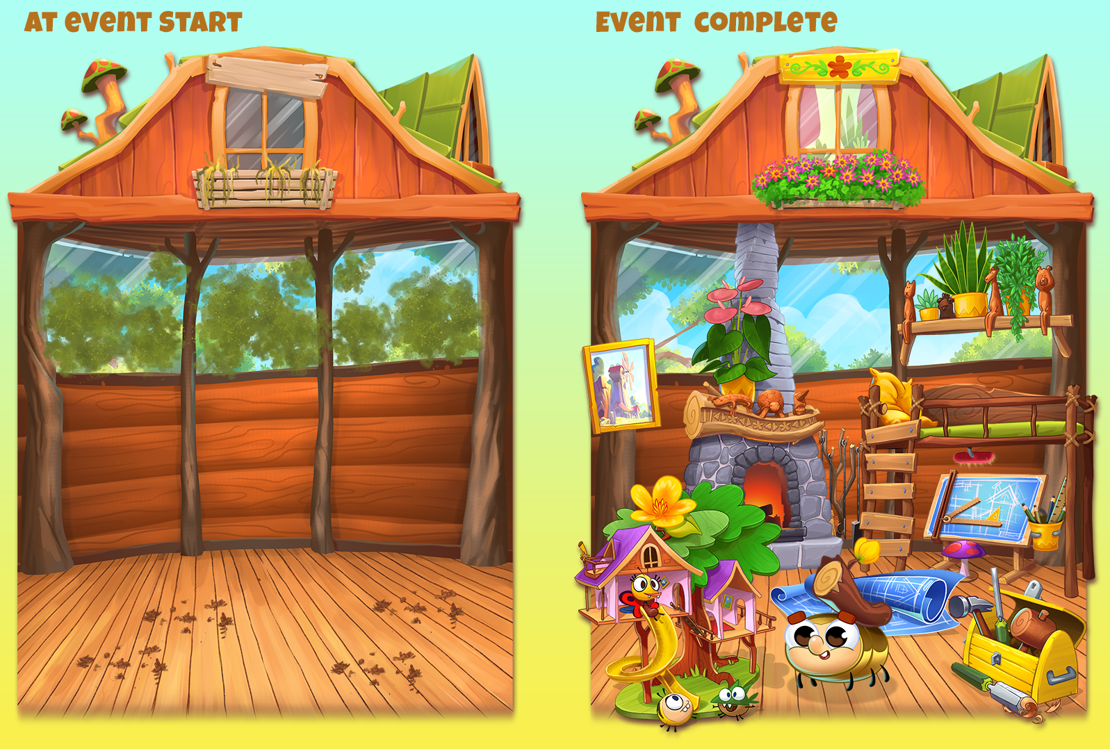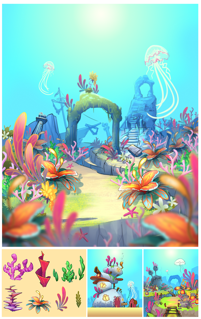 In Best Fiends, when a brand new Fiend is released, there is an Early Access Event that allows players to win the Fiend before it's official release. To do this they must win items by playing levels that would allow you to build their habitat. This is the skin of one such event where I designed the environment and all the props (and the character!) that would be won throughout the even.